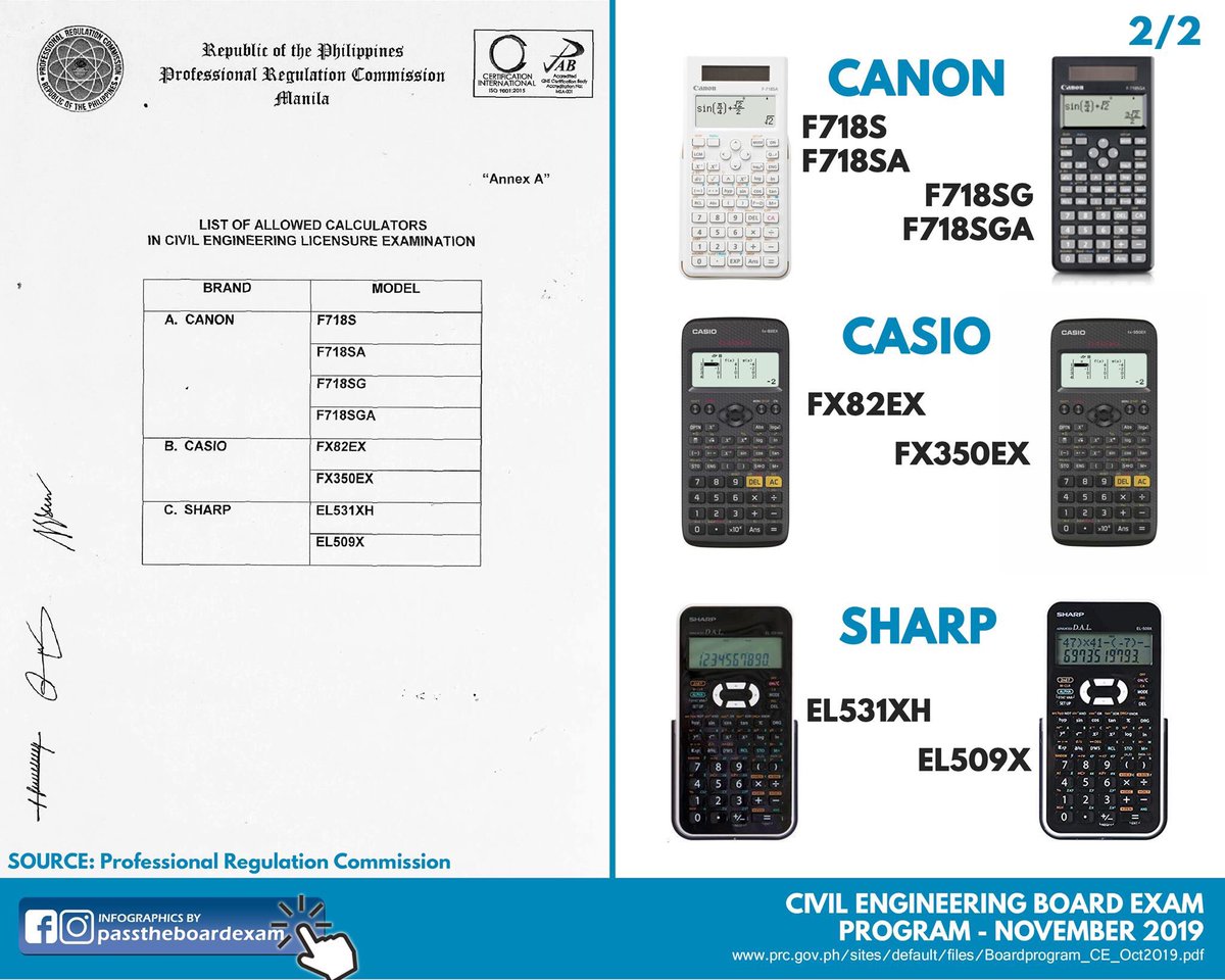 M On X Breaking News The Civil Engineering Board Exam Program Was Just Released By The Prc List Of Allowed Calculators Canon F718s F718sa F718sg F718sga Casio Fx82ex Fx350ex